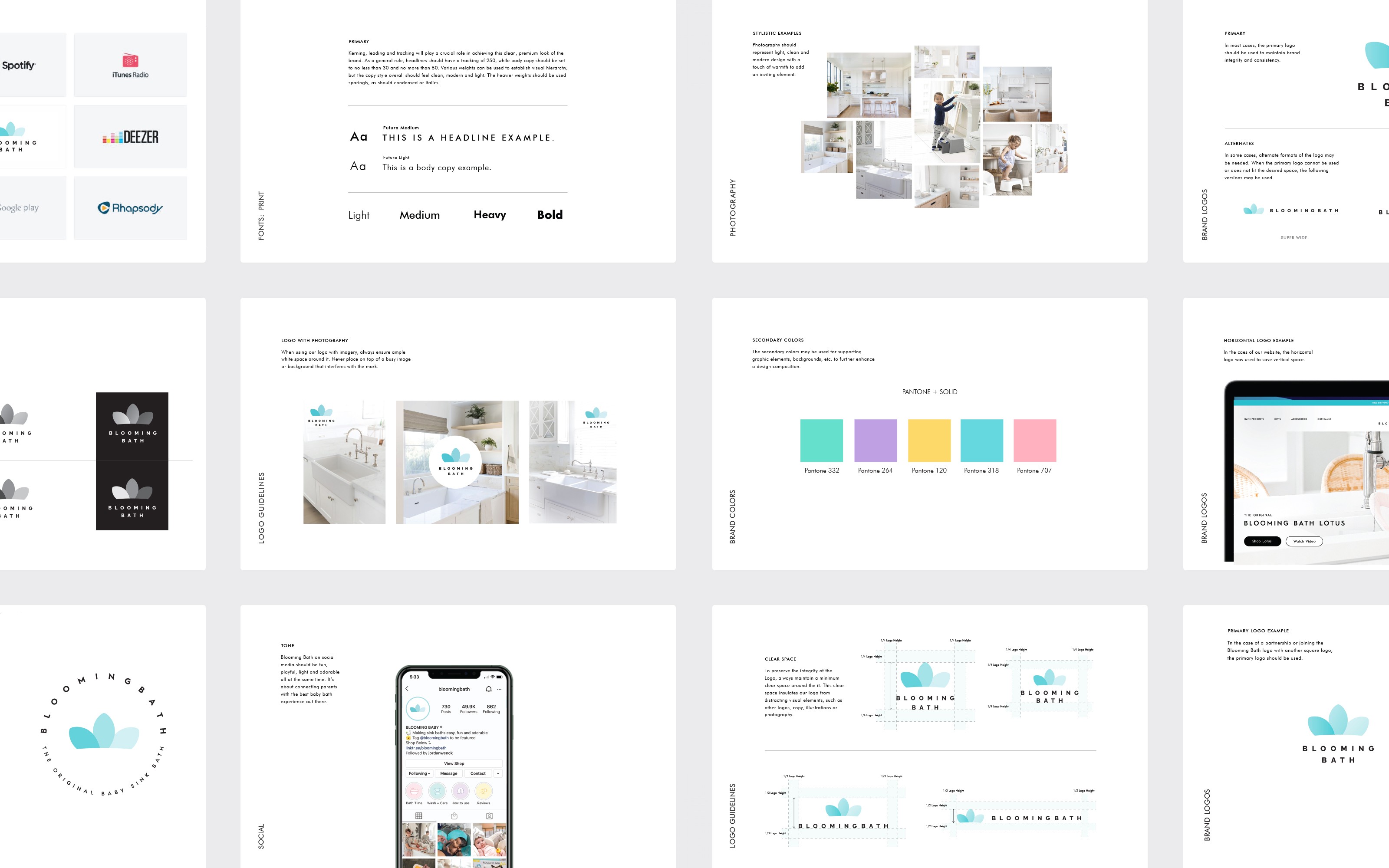For Blooming Bath, I led a complete brand overhaul aimed at modernizing and refreshing the company’s identity while preserving its playful, baby-friendly essence. Known for their flower-shaped cushions that turn any sink into a cozy, safe space for baby bath time, the product inspired a visual system rooted in softness, warmth, and joy. The rebrand included a new logo, updated typography, color palette, packaging, website, and social media presence. Each element was thoughtfully designed to feel clean, contemporary, and emotionally resonant—positioning Blooming Bath as both a functional must-have and a feel-good favorite for modern parents.